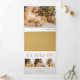 Elegant, minimal and modern "Joy + Peace + Love" timeless script graphic message in a hammered gold textured style with a three-photo template and four editable text fields on a clean white background.