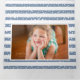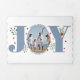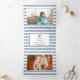 Joie bleue poussiéreuse et baies Noël vacances triplé carte photo. La couverture montre le mot "JOY" avec des baies rouges et de la verdure tandis qu'au lieu de la lettre "O" il y a votre photo. Les premiers et derniers panneaux intérieurs ainsi que le volet extérieur sont dotés d'un motif de rayures bleues et blanches poussiéreuses et de neige qui forment des cadres pour vos photos. Le panneau central intérieur affiche un cadre avec vos souhaits accentués de baies rouges et de verdure. Quelques photos sont de Photographie © Storytree Studios, Stanford, CA