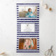 La marine bue joie et baies Noël fête triplé carte photo. La couverture montre le mot "JOY" avec des baies rouges et de la verdure tandis qu'au lieu de la lettre "O" il y a votre photo. Les premiers et derniers panneaux intérieurs ainsi que le volet extérieur sont dotés d'un motif de rayures bleu marine et blanc et de neige qui forment des cadres pour vos photos. Le panneau central intérieur affiche un cadre avec vos souhaits accentués de baies rouges et de verdure. Quelques photos sont de Photographie © Storytree Studios, Stanford, CA