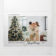 Carte de Noël minimaliste avec Noël en script chic et 4 photos.