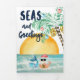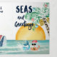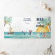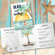 Partagez des vœux amusants et festifs avec cette carte de Noël pliée en trois, représentant une recherche de mots de Noël sur le thème de la plage, des blagues et un paysage marin à l'aquarelle comprenant le Père Noël, une sirène, une baleine, un navire et des sapins de Noël avec des palmiers. La couverture représente une sirène et le Père Noël (avec une boisson tropicale à l'ananas) dans l'océan, une légende "Seas and Greetings" en marine nautique et un sapin de Noël en palmier. L'intérieur comprend un jeu de recherche de mots à gauche et des blagues à droite. L'intérieur central représente un palmier décoré d'ornements et de lumières, un vœu "Warmest Wishes" et deux lignes de texte que vous pouvez personnaliser. Le dos représente une baleine avec un ch