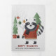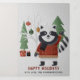 Raton d'hiver et arbres Noël multi photo Tri-Fold Holiday Card. il présente un raton laveur en vêtements d'hiver et des arbres sur la couverture, plus de photos à l'intérieur des panneaux gauche et droit ainsi que sur le rabat extérieur et le même raton laveur avec une maison et vos souhaits au milieu intérieur. Photographie © Storytree Studios, Stanford, CA