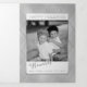 Envoyez un accueil de vacances mémorable avec ce design élégant et unique tonalité sur ton avec des lignes diagonales argentées à dégradé élégant sur un arrière - plan de luxe imitation argent avec modèle photo orienté portrait, champs de texte modifiables et typographie personnalisée "Happy Holidays". Les panneaux comportent des graphiques complémentaires et des champs de texte modifiables.