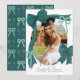 Cette carte de fin d'études coquette présente votre photo entourée de rubans verts dessinés à la main. Le verso présente un fond vert foncé avec un motif de rubans. Personnalisez-la selon vos besoins. Vous pouvez trouver des produits assortis dans ma boutique.