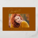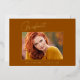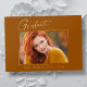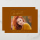 Cartes en or "Photo" de graduation "Photo" propres, tendance, modernes et élégantes (votre choix d'or en argent ou en papier rose), avec des éléments de design de texte moderne avec un script unique calligraphie encre. La photo du diplômé sur le devant de la carte est accentuée d'une finition partielle délicate et minimaliste. Le dos de la carte offre des espaces de texte personnalisés pour des informations sur votre diplôme ou peut être effacé si vous souhaitez écrire un message à la main. Oranger brûlé, couleur rouille avec feuille d'or ou customiser facilement l'arrière - plan pour correspondre à la couleur primaire de votre école ou toute couleur de votre choix. Parfait pour les étudiants de deuxième cycle du secondaire, du collège et de l'université.