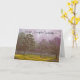 Mon oeuvre d'art numérique originale avec ma photo originale de champs de fleurs et d'arbres fleuris par jour brumeux est sur cette carte de sympathie pacifique. L'image a été traitée avec un effet imaginaire aquarelle pour une apparence illustrée avec des sous-tons violets lavande. Le recto de la carte indique "Avec une sympathie sincère" et l'intérieur dit "Partager dans votre tristesse et prier pour le confort et la paix." pour un salut sincère en temps de chagrin.