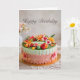 Cette belle carte d'anniversaire présente un gâteau tropical pastel orné de fleurs d'hibiscus vibrantes, de verdure luxuriante et d'accents de fruits colorés. Les tons verts et roses doux combinés à des détails de piping complexes créent un design frais et joyeux qui se sent à la fois élégant et festif—parfait pour célébrer un anniversaire spécial avec une touche de charme inspiré de l'île.