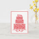 La carte de vœux de mariage est illustrée d'une impression graphique de gâteau rouge fantaisie.