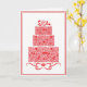 La carte de vœux de mariage est illustrée d'une impression graphique de gâteau rouge fantaisie.