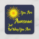 Augmentez l'estime de soi avec les Cartes de Bonté! Il s'agit de cartes de carte de visite carré de taille avec des mots positifs et inspirants à distribuer à des amis, se cacher dans les déjeuners des membres de la famille, ou partir pour un étranger à la recherche d'égayer leur journée. Ce design comprend un soleil orange vif et le texte "You Are Awesome Just the Way You Are".