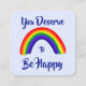 Soulevez les esprits des gens avec des Cartes de Bonté ! Il s'agit de cartes de carte de visite carré de taille avec des mots positifs et inspirants à distribuer à des amis, se cacher dans les déjeuners des membres de la famille, ou partir pour un étranger à la recherche d'égayer leur journée. Ce design comprend un arc-en-ciel coloré et le texte "You Deserve to Be Happy".