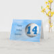Une grande carte de plaisir pour un golfeur ou une occasion de golf. Une balle de golf volant à travers l'air avec 14 écrits dessus.