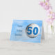 Une grande carte de plaisir pour un golfeur ou une occasion de golf. Une balle de golf volant à travers l'air avec 50 écrits dessus.