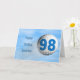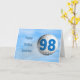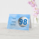 Une grande carte de plaisir pour un golfeur ou une occasion de golf. Une balle de golf volant à travers l'air avec 98 écrits dessus.