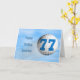 Une grande carte de plaisir pour un golfeur ou une occasion de golf. Une balle de golf volant à travers l'air avec 77 écrits dessus.