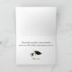 Carte de voeux élégante de remise de diplômes, avec une photo d'oeillets blancs, en tant qu'arrière - plan. Graphiques d'un casquette de mortier d'un diplômé noir, avec un goût de ton or, dans le coin supérieur droit et le texte du script graphique de ton or dit Félicitations, sur le devant. Le message d'accueil en noir, à l'intérieur, est prêt à personnaliser pour lire ce que vous voulez. Jolie carte à votre fille diplômée préférée.