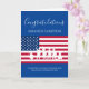 Une simple carte d'accueil militaire, avec le drapeau américain, le texte "FÉLICITATIONS, NOM DU MIEL ET MESSAGE !", le nom du soldat et des soldats en silhouette. Vous pouvez modifier les styles, la taille et la couleur des polices en cliquant sur le lien personnaliser après la personnalisation.