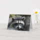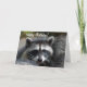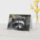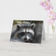 Ce jeune bandit de raton laveur lève les yeux de son déjeuner, bouche toujours ouverte, pour vous souhaiter un joyeux anniversaire. La photographie montre un gros plan de son visage serré entre les côtés gris et furieux de sa mère et de son frère. Les petits yeux sombres vous clignotent du masque noir qui coule sur son visage, avec des murmures blanches, comme celle d'un chat, se détachant contre le noir. Des bandes blanches apparaissent au-dessus et au-dessous des yeux, et le nez noir commence une bande noire verticale qui monte le front vers la tête noire. Ses petites oreilles noires sont surlignées de blanc. Un petit avant-goût sombre, tout comme une main, est à sa bouche prêt à éclater un peu de nourriture pour chat. Contre l'arrière - plan flou sont écrits les mots, "Joyeux anniversaire !" en écriture blanche. Lui et sa famille de maman et deux frères et soeurs sont venus pour un cadeau à la maison de ma soeur à Ocean Shores, WA. Copyright Gail Storrs 2011.