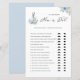 Devine qui ? Maman ou papa ? Ajoutez cette carte de jeu de baby shower botanique amusante et ludique à votre événement. Il présente des illustrations aquarelle de roses blancs et bleus et des pivoines avec un accent verdoyant. Personnalisez en ajoutant des textes. Cette carte de jeu florale est parfaite pour l'hiver et It's a Boy baby showers.