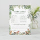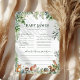 Rendez votre baby shower encore plus spécial avec cette carte de prédictions de Baby shower Whimsical Woodland Animaux! Conçu avec d’adorables animaux de la forêt, de la verdure d’eucalyptus aquarelle et du charme rustique de la forêt, ce jeu vous permet de deviner avec plaisir les détails de l’arrivée du bébé, comme la date de naissance, le poids, la couleur de l’oeil, etc. C’est un souvenir mémorable pour la future mère, qui capte l’amour et l’excitation de ce beau voyage. Avec une élégante typographie calligraphique, des éléments d'aquarelle douce, et un thème de nature d'inspiration boho, cette carte de prédictions baby shower s'intègre parfaitement avec des invitations de douches bébé en bois, décorations de fête et papeterie. Que vous fêtiez "It’s a Girl" ou que vous soyez l’hôte d’un baby shower sans distinction de genre, cette carte de charme ajoute une touche moderne et fantaisiste à votre événement. Parfait pour les baby showers à thème boho, rustique et capricieux, cette carte de prédictions est une façon amusante et interactive d'impliquer les invités tout en créant une mémoire chère pour les parents à être.
