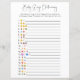 Cette carte de jeu double face dispose de deux versions différentes de pictionary émoji sur l'avant et l'arrière, et est parfait pour un baby shower ou un bébé sprinkle. Ce jeu d'émoticônes émoticônes présente un design de script moderne. Parfait pour une célébration sans distinction de genre. Vos invités peuvent résoudre ces phrases communes de grossesse et de bébé en décodant les émoticônes. CLÉ DE RÉPONSE : 1. Baby shower 2. Jumeaux 3. Triplés 4. Maman doit avoir 5 ans. Brise d'eau 6. Sac pour bébé de l'hôpital 7. Date d'échéance 8. Bouteille bébé 9. Voyage à l'hôpital 10. Couper la corde 11. Pâte au four 12. Pas d'alcool 13. Fille ou garçon ? 14. Faire-part de grossesse 15. Nourriture pour bébés 16. Brûlure cardiaque 17. Maladie du matin 18. Baisers à papillon 19. Baby Moon 20. Cravages de grossesse. Vos invités peuvent résoudre les noms des livres pour enfants et des comptines en décodant les émoticônes. CLÉ DE RÉPONSE : 1. Cinq Petits Singes Qui Sautillent Sur Le Lit 2. Twinkle Twinkle Little Star 3. Itsy Bitsy Spider 4. Poisson arc-en-ciel 5. La Caterpillar Très Affamé 6. Le Lion, La Sorcière & L'Armoire 7. Hickory Dickory Dock 8. J'espionne 9. Oeufs verts et jambon 10. Winnie L'Ourson 11. Charlotte's Web 12. Alice au pays des merveilles 13. Si Vous Donnez Un Cookie À Une Souris 14. Hey Diddle Diddle 15. Il y avait une Vieille Femme 16. Un Poisson, Deux Poissons, Poisson Rouge, Poisson Bleu 17. Où Les Choses Sauvages Sont 18. Goldilocks et les trois ours 19. Les Trois Petits Cochons 20. Le vieux MacDonald avait une ferme. Vous pouvez personnaliser cette conception en cliquant sur "Personnaliser ce modèle" ou si vous souhaitez modifier la police, les couleurs ou organiser les éléments de conception d'une manière différente, vous pouvez cliquer sur "Modifier à l'aide de l'outil de conception".