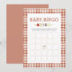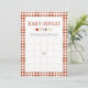 Ajoutez une touche amusante et interactive à votre baby shower avec cette charmante carte Baby Bingo ! Avec un thème Baby-Q rustique, ce design présente un fond à carreaux marron clair associé à une brochette aquarelle adorable - le mélange parfait de convivialité et de mignonnerie. Les invités remplissent les carrés avec les cadeaux qu'ils pensent que la future maman recevra, puis les cochent au fur et à mesure qu'elle ouvre ses cadeaux. Le premier à obtenir cinq d'affilée gagne !