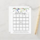 Carte de bingo de douche nuptiale avec cascade d'aquarelle de fleurs sauvages et de verdure avec une abeille bourdonnante. Une façon amusante d'interagir avec les invités de douche pendant que la future mariée ouvre ses cadeaux.