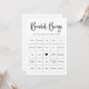 Voici notre carte de jeu de bingo noir et blanc à écriture moderne, où la plupart des textes sont personnalisables, vous permettant de créer votre jeu unique. Ce design noir et blanc élégant promet rires et divertissement, ce qui en fait l'ajout parfait à toute fête de mariage ou enterrement de vie de jeune fille.