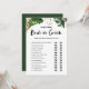 Carte de jeu de devinette de mariage tropicale pou