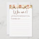 Élevez votre douche de mariage d'automne avec notre carte de jeu "Boho Flowers Who Am I", alliant charme rustique et élégance boho chic. Les invités s'amuseront à deviner leurs personnages assignés sur un fond de motifs floraux, ajoutant une touche amusante et personnalisable à votre célébration. Parfait pour un dernier envol avant l'anneau, ce jeu promet des rires et des divertissements alors que les invités participent à cette activité interactive et agréable.