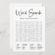 Élevez votre enterrement de vie de jeune fille avec notre carte de jeu de recherche de mots, conçue dans un style minimaliste chic avec une écriture élégante en noir et blanc. Cette recherche de mots moderne et amusante est l'ajout parfait à votre célébration, engageant les invités dans une activité délicieuse tout en honorant la future mariée !