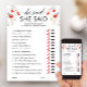 Préparez-vous à ajouter une touche d'élégance à votre shower de mariage de printemps ou d'été avec notre jeu de shower de mariage 'Il a dit, elle a dit' à l'aquarelle rouge. Cette carte de jeu de shower de mariage personnalisable présente de superbes fleurs rouges peintes à la main à l'aquarelle et une calligraphie élégante, ce qui en fait l'ajout parfait à votre célébration.