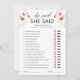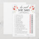 Carte de jeu de shower de mariage floral 'Il a dit