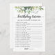 Carte de jeu modifiable pour l'anniversaire Trivia