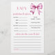 Carte de jeu Watercolor Pink Bow Ribbon Baby Predictions et conseils pour bébé. Éléments correspondants disponibles.