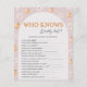 Carte de jeu pour Baby Shower « Qui connaît le mie