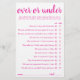 Simple "Over ou Under ?" jeu de quiz pour baby shower ou révélation de sexe avec un script manuscrit amusant et décontracté. Le design classique comprend une typographie de citation manuscrite moderne en surimpression. Pour d'autres couleurs ou produits assortis, veuillez visiter la boutique JustFharryn Zazzle, ou contacter le concepteur, c/o Fharryn@yahoo.com Tous droits réservés. #bohochic #zazzlemade