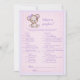 Adorable ours brun et pourpre pour le baby shower d'une fille. What's On Your Phone baby shower jeu. Couverture rose et violet avec bordure mauve cousue pour arrière - plan. Des modèles ont été fournis sur le dos.