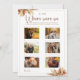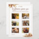 La carte de jeu Where Were We automne herbe de la pampa offre une touche unique. Son design à l'aquarelle rustique présente quelques photos au milieu de la pampa sèche, parfait pour les enterrements de vie de jeune fille ou les fêtes prénuptiales sur le thème bohème. Les invités peuvent s'amuser à deviner les lieux des événements mémorables représentés sur la carte, ajoutant un élément amusant et interactif à la célébration d'automne.