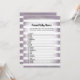 Profitez de jouer à ce jeu de baby shower Animal Baby Names sur douce, violet et blanc de rayures d'eau arrière - plan. Mignons lapin blanc, lapin lapin sur le dos avec des modèles créés pour vous.
