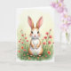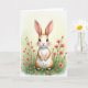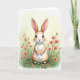 Conçue avec un lapin doux et anthropomorphe au centre, cette illustration numérique le place dans un jardin printanier qui ressemble à un coin tranquille fait pour partager un moment tendre 🐰. Le lapin est tourné vers l'avant avec de grands yeux bruns et un petit nez rose, et son sourire doux ressemble à un salut amical destiné à quelqu'un de spécial. La fourrure chaude caramel et blanche est ombrée pour paraître douce, tandis que les longues oreilles avec des intérieurs rose pâle encadrent le visage comme un bouquet enveloppé dans un papier de soie. Derrière lui, un lavis vert clair et jaune doux suggère la lumière du matin, donnant à la scène une atmosphère aérienne et rêveuse. Des fleurs corail et rose clair grimpent sur de minces tiges vertes autour du lapin, avec de minuscules pétales blancs et orange dispersés comme de petits mots dans l'air 🌷. La composition semble équilibrée et centrée, attirant votre regard sur l'expression calme du lapin et les fleurs voisines qui s'inclinent vers l'intérieur comme si elles le tenaient compagnie. Un court message de Pâques est placé près du haut dans une teinte pastel douce, avec une ligne de texte plus petite placée en dessous dans