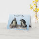 Customisez facilement le texte sur cette carte de la Fête des Mères qui présente deux adorables pingouins africains debout sur une corniche rocheuse. Ce sont des oiseaux aquatiques sans vol dont les ailes sont devenues des palmes. Chacune a une bande noire et des taches noires sur la poitrine. Le motif de taches est unique pour chaque pingouin, tout comme les empreintes digitales humaines. Ils ont des glandes roses au-dessus des yeux et des pieds roses et noirs. Deux autres petits pingouins sont à l'intérieur.