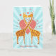 girafes valentines carte de jour pour tous ces adorables amoureux de girafes Ces girafes mignonnes sont dessinées dans un style drôle sur fond de beaux coeurs et de rayons bleus. Avec leur tête touchant affectueusement, ils forment un coeur en forme de cou magnifique. Avec les coeurs, les étoiles et les fleurs autour d'eux cette carte de valentines mignonnes et adorables avec texte personnalisable à l'intérieur qui dit 'Our Love Keeps Growing. Joyeuse Saint Valentin'. Une carte de girafe parfaite valentines mignonne.