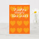 Carte de la Saint Valentin orange avec un motif de coeur jaune. Le verset extérieur est "Vous êtes simplement le meilleur". Le verset intérieur est "Mieux que tout le reste".