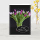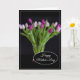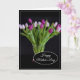 Cette carte de la Fête des Mères est illustrée d'une belle photo d'impression de tulipes violettes.