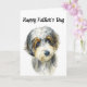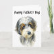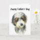 Cette carte de la fête des pères du chien a un fond blanc uni avec un chien Aussie Doodle (Australian Doodle) à l'aquarelle et la légende modifiable "Joyeuse fête des pères". À l'intérieur de la carte se trouve le verset "N'importe quel homme peut être père, mais il faut quelqu'un de super pour être un papa chien" "Joyeuse fête des pères, amour de [Nom du chien]". Le texte peut être modifié pour convenir à d'autres 'parents de chiens' et orthographes comme Papa, Grand-père, Papi, etc.