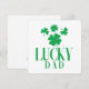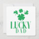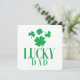 Envoyez votre amour avec une touche de chance ! Cette carte *Papa chanceux* présente deux trèfles à trois feuilles et deux trèfles à quatre feuilles dans un design vert audacieux qui célèbre l'homme le plus chanceux que vous connaissiez - Papa ! Une façon amusante et festive de lui souhaiter une bonne Fête des Pères avec un charme et une gaieté supplémentaires.