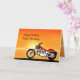 Une moto semblable à une Harley debout au bord de la mer avec un glorieux coucher de soleil orange. Une grande carte pour tous ceux qui aiment le vélo et les motos.Voir toute la gamme de cartes pour les âges et les relations dans mon magasin. Toutes les oeuvres d'art copyright Norma Cornes