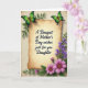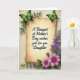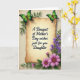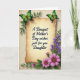 Cette carte est centrée sur un panneau de parchemin à la teinte antique avec des bords doucement recourbés, posé sur un fond crème légèrement texturé. Au milieu du parchemin, un lettrage noir fluide indique « Un bouquet de vœux pour la fête des mères, juste pour toi, ma fille », les mots étant espacés de manière régulière et faciles à repérer. Deux papillons verts reposent près des coins supérieurs, leurs ailes passant de l'émeraude foncé au vert lime clair comme s'ils faisaient une pause ensemble dans un moment calme et affectueux ❤️. Le long du bord droit, un mince sentier vertical de minuscules fleurs violettes grimpe vers le haut à travers des tiges vertes feuillues, comme un guide doux pour les yeux. Dans la zone inférieure droite, un bouquet plus fourni de fleurs rose fuchsia en forme de marguerite s'ouvre largement, leurs centres bruns chauds ajoutant une touche chaleureuse et amicale 🌼. Le mélange de verts, de violets et de roses sur le beige doux crée une scène de jardin calme qui se sent proche et attentionnée. Le parchemin et les éléments flor