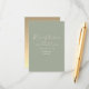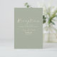 Carte minimale, élégante, moderne, sauge verte de réception de mariage avec script de calligraphie simple écrit à la main.
